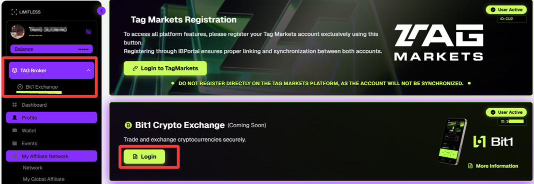 Bit1 is an invitation-only crypto exchange. Endotech is Bit1 Exchange’s first technology partner, providing Bit1 users with automated/copy trading services. Join Limitless IB Portal for free, granting you access to intelligent trading tools such as Endotech AI trading, Bit1 copy trading, and Tag Markets copy trading. Funds are solely under your control on the exchange, with anytime capital return, no lock-up period, and no penalties. A rewards program is in place: 60% of trading fees and 15% of trading profits go back to the community. The IB Affiliate program offers generous and permanent benefits! If you are unable to register, you need to enable a VPN. Join Link: