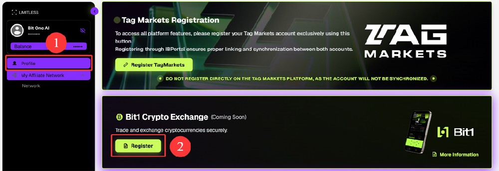 Bit1 is an invitation-only cryptocurrency exchange. Endotech is Bit1 Exchange’s first technology partner, providing Bit1 users with automated/copy trading services. Join Limitless IB Portal for free, granting you access to intelligent trading tools such as Endotech AI trading, Bit1 copy trading, and Tag Markets copy trading. Funds are solely under your control on the exchange, with anytime capital return, no lock-up period, and no penalties. A rewards program is in place: 60% of trading fees and 15% of trading profits go back to the community. The IB Affiliate program offers generous and permanent benefits! Join Link: